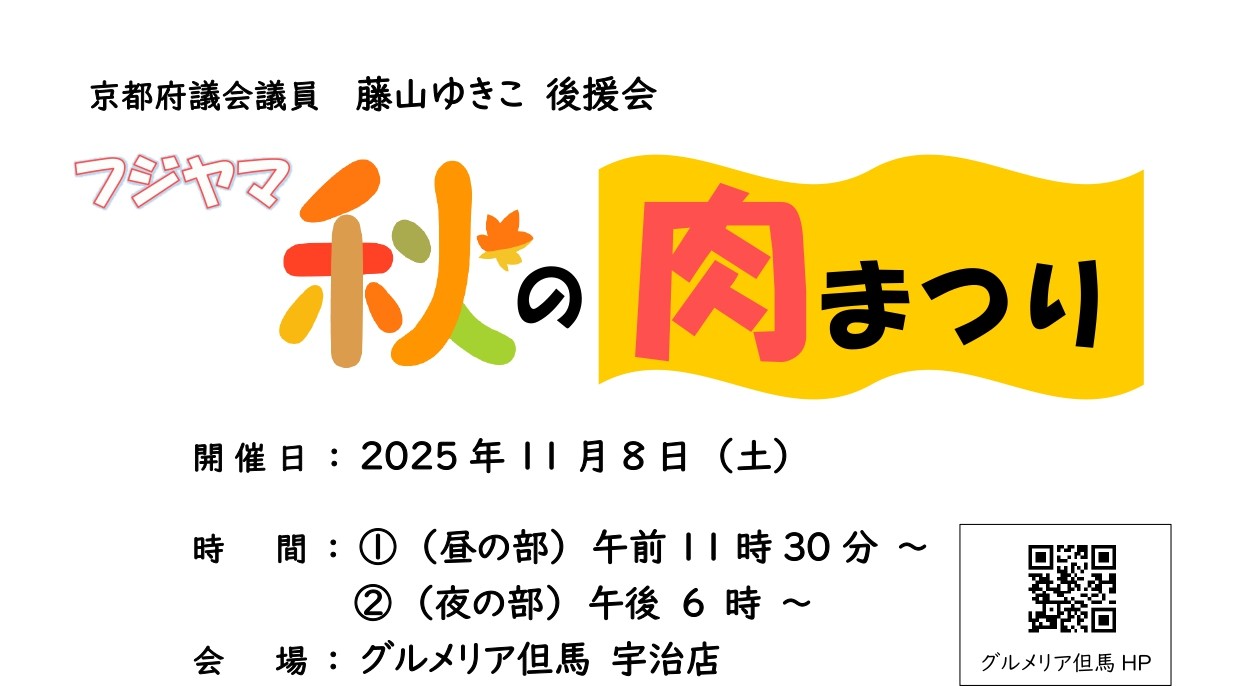 お知らせ 2025-10-15 「フジヤマ 秋の肉まつり」受付開始です 2025-10-09 園芸高温対策等支援事業の【三次募集】開始 2025-10-09 「活動報告 Vol.34:2025.10発行」を掲載しました 2025-09-25 地域交響プロジェクト交付金、追加募集! 2025-09-17 小規模事業者持続化補助金、申請受付開始します(終了しました) 2025-09-17 9/24京都府議会、一般質問いたしました 2025-08-28 「府民協働型インフラ保全事業」の2次募集を開始 2025-08-20 多様な働き方推進事業費補助金 2025-08-20 建設業等人材確保対策支援事業(終了しました) 2025-07-31 京都府物価高騰対策・生活困窮者支援事業費補助金のご案内 123>